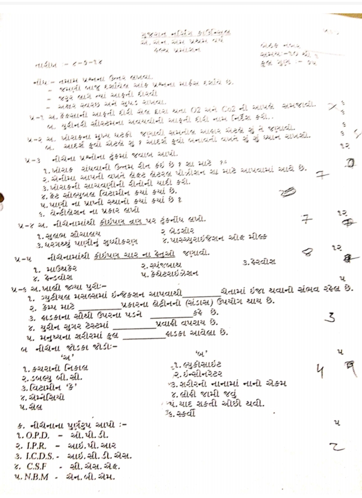 3 – 4 3.વિટામીન ‘કે’ 3.શરીરનો નાનામાં નાનો એકમ