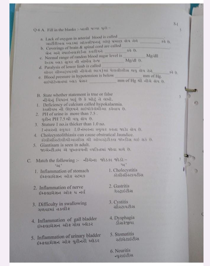 Q.2 A. Write the immediate nursing assessment & nursing management of patient with head injury in Trauma CENTRE 06 ટ્રોમા સેન્ટરમાં હેડ ઇન્જરીના પેશન્ટનું તાત્કાલિક નર્સિંગ અસેસમેન્ટ તથા મેનેજમેન્ટ લખો.