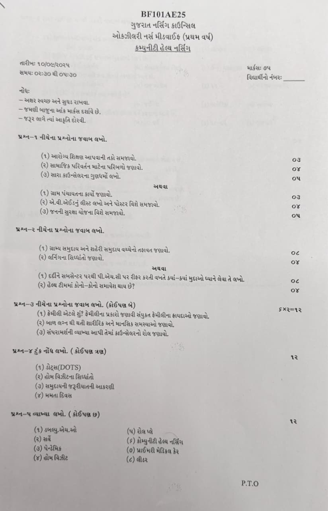 (૬) કોમ્યુનીટી હેલ્થ નર્સિંગ