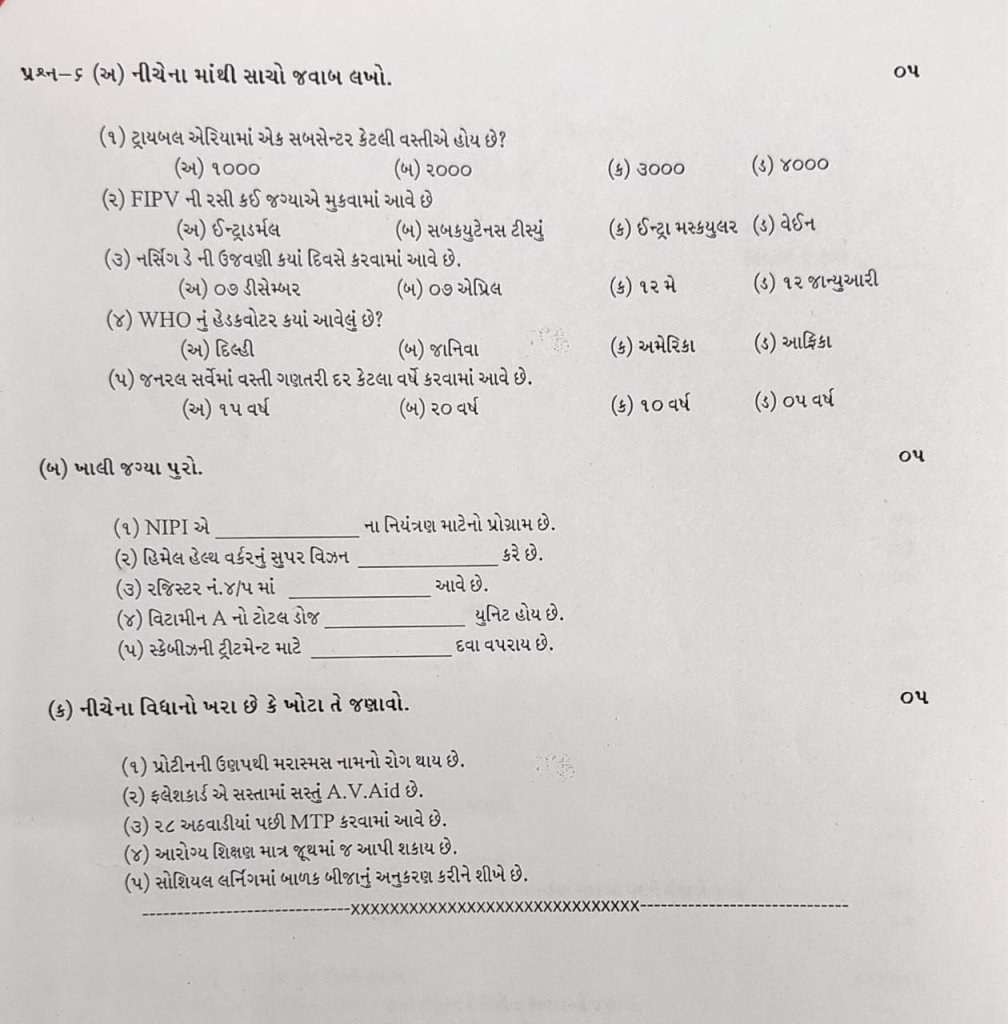 પ્રશ્ન-૬ (અ) નીચેના માંથી સાચો જવાબ લખો. 05