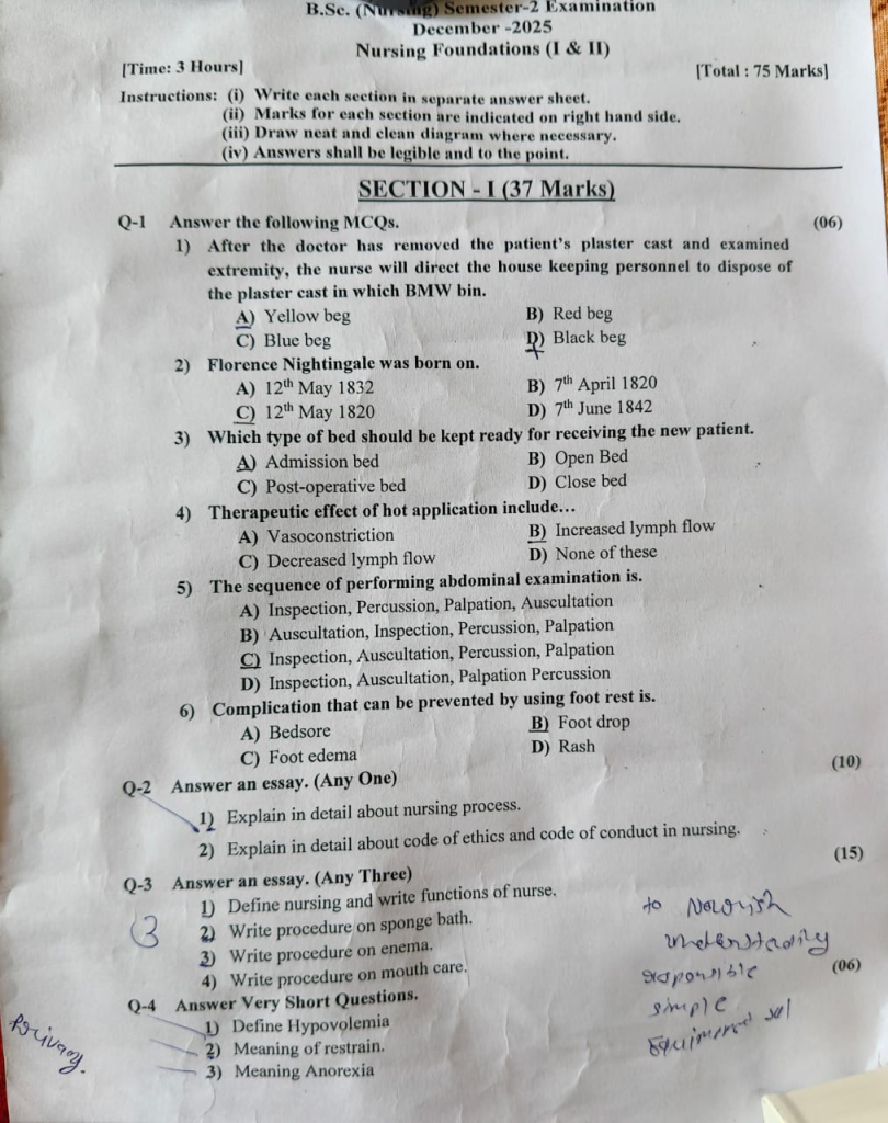 B.Sc. (Nursing) Semester-2 December-2025Nursing Foundations (I & II)