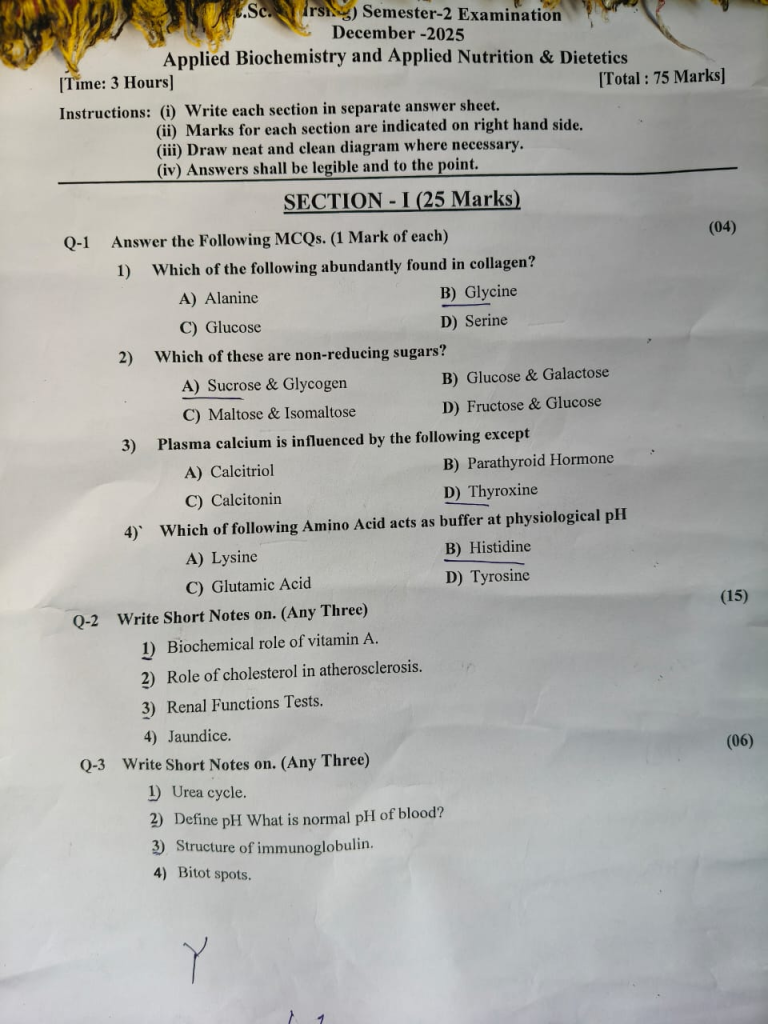 1. Which of the following abundantly found in collagen? A) Alanine B) Glycine C) Glucose D) Serine