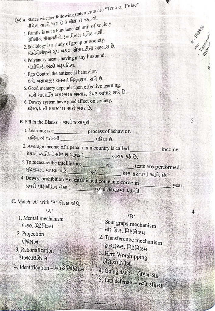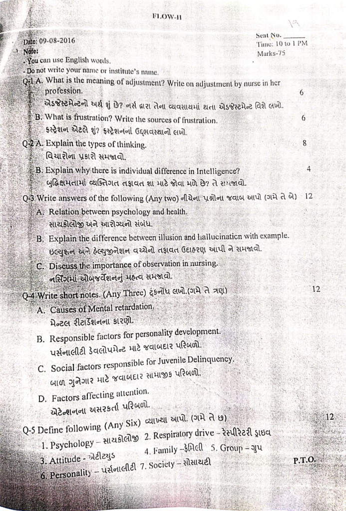 Q-1 A. What is the meaning of adjustment? Write on adjustment by nurse in her profession. 06 MARKS એડજેસ્ટમેન્ટ નો અર્થ શુ થાય છે? નર્સ દ્વારા તેના વ્યવસાય મા થતા એડજેસ્ટમેન્ટ વિશે લખો.