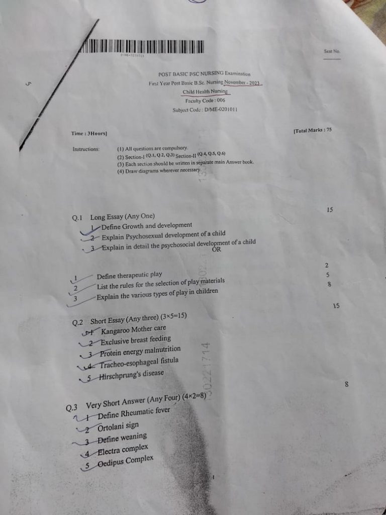 🟢P.B.B.SC.Child health nursing – November 2023(SAU.UNI) (PAPER NO.6)