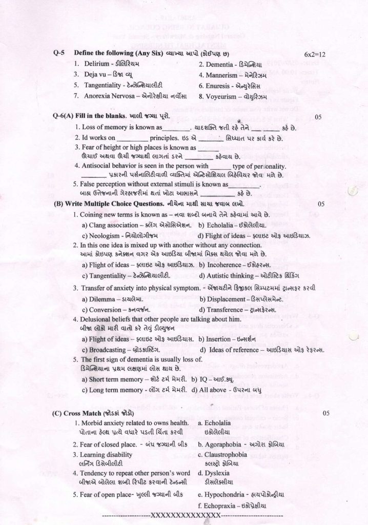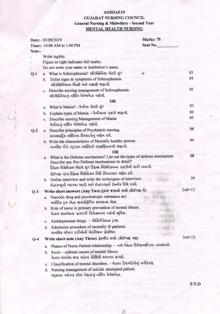 MENTAL HEALTH NURSING-GNC-PAPER SOLUTION YEAR-05/09/2019