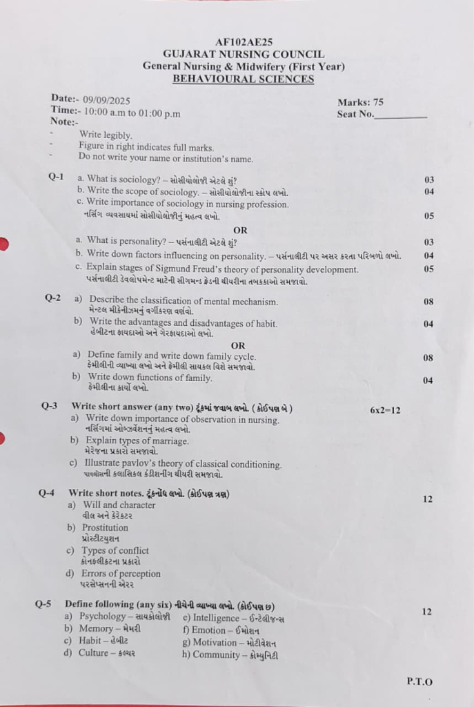 c. Write importance of sociology in nursing profession. નર્સિંગ વ્યવસાયમાં સોસીયોલોજીનું મહત્વ લખો. 05