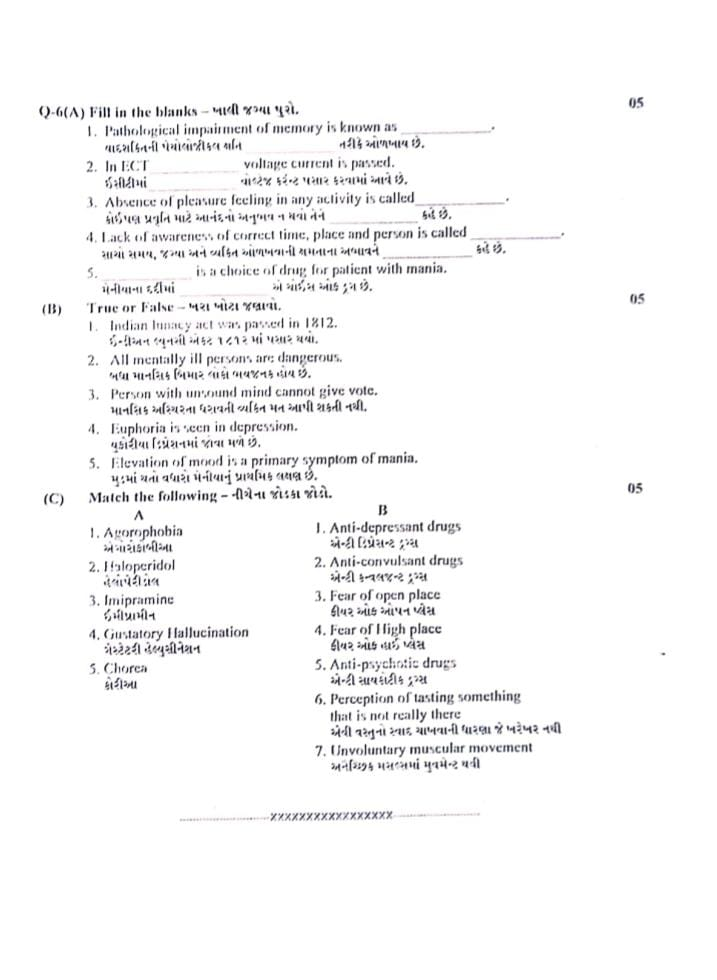 5.——–is a choice of drug for patient with mania. મેનીયાના દર્દીમાં ——-એ ચોઈસ ઓફ ડ્રગ છે. Lithium (લિથિયમ)