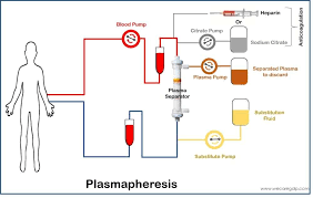 પ્લાઝમાફરેસીસ એ એક પ્રોસેસ છે જેમાં બોડી માંથી બ્લડ પ્લાઝમાને રીમુવ કરી તેને એક્સચેન્જ કરી અને બોડીમાં પાછું રિટર્ન કરવામાં આવે છે.