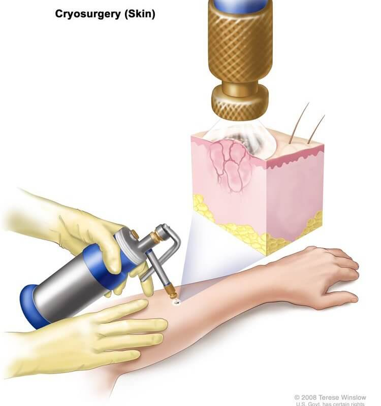 ક્રાયોસર્જરી એક પ્રોસેસ છે જેમાં લિક્વિડ નાઇટ્રોજન દ્વારા એક્સ્ટ્રીમલી કોલ્ડ ઉત્પન કરવામાં આવે છે જે કેન્સરીયસ સેલ અને એબનોર્મલ ટીશ્યુને ડીસ્ટ્રોય કરવામાં આવે છે.