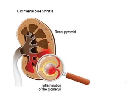 • એક્યુટ ગ્લોમેરુલોનેફ્રાયટીસ માં કિડની મા રહેલા ગ્લોમેરુલર કેપેલારીસ નું ઇન્ફલાર્મેશન થાય તેને ગ્લોમેરુલોનેફ્રાઈટીસ કહેવામાં આવે છે.