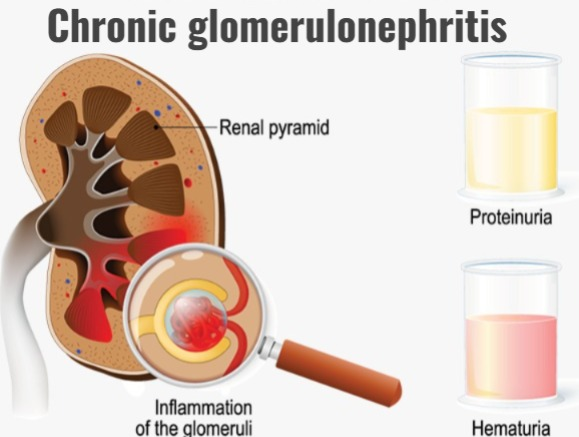 • ક્રોનિક ગ્લોમેરુલોનેફ્રાયટીસ એ એવી કન્ડિશન છે. glomeruli( kidney filtering unit) નુ