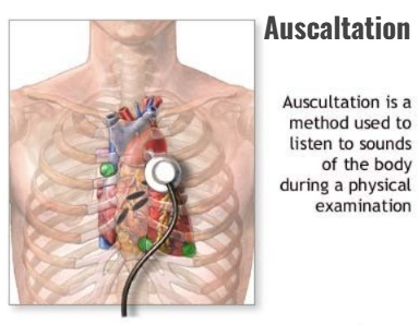 આ એક ફિઝિકલ એક્ઝામિનેશનની મેથડ છે. જેમા બોડીના સાઉન્ડને ઇયર અથવા સ્ટેથોસ્કોપ દ્વારા સાંભળવામા આવે છે. જેમા હાર્ટ, લંગ્સ, વેસલ્સ, ઈન્ટેસ્ટાઇન વગેરે માથી સાઉન્ડ સાંભળવામા આવે છે. જેમા હેલ્થ કેર પ્રોવાઇડર એ સાઉન્ડ સાંભળવા માટે સ્ટેથોસ્કોપ નો ઉપયોગ કરે છે. આ એક ડાયગ્નોસ્ટિક પ્રોસિજર પણ છે.