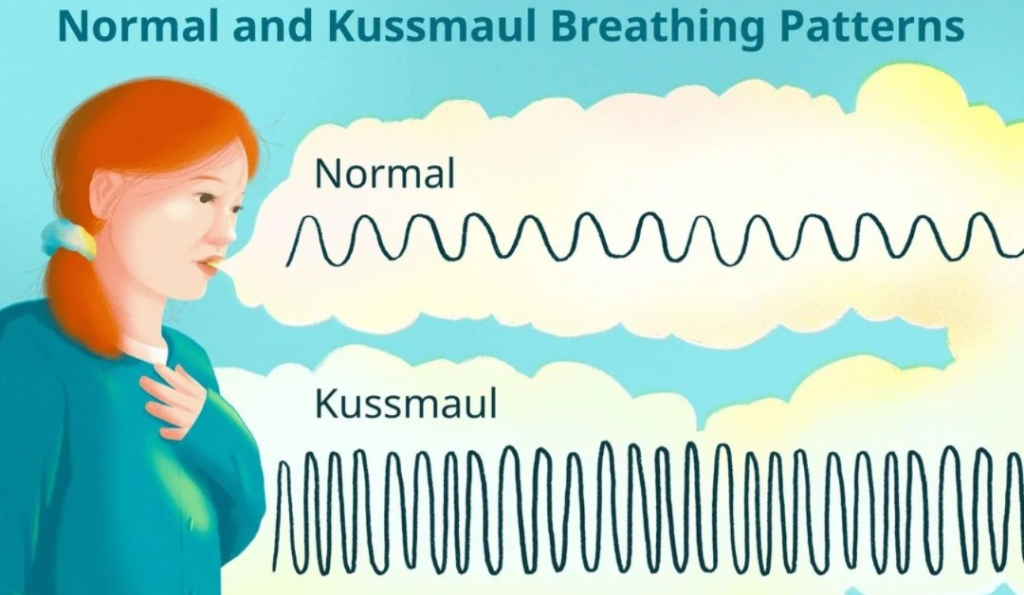 kussmaul breathing (કુસમૌલ બ્રીધીંગ):