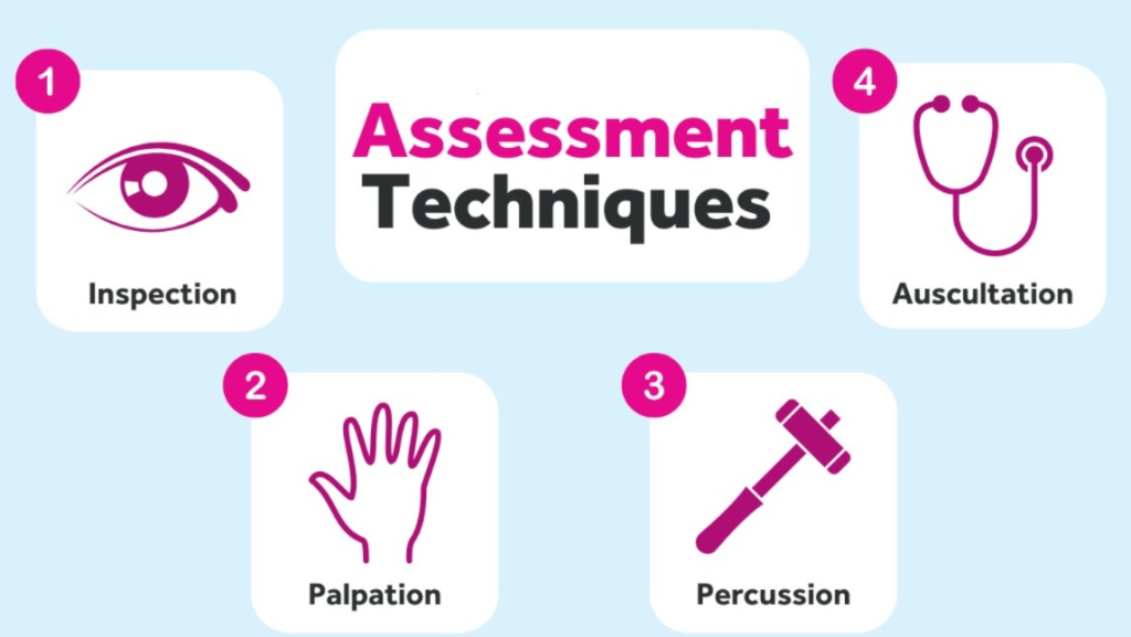 અસેસમેન્ટ = દર્દીનું અવલોકન+દર્દીનું ફેમિલી અને અન્ય નોંધપાત્ર વ્યક્તિઓનું ઇન્ટરવ્યૂ+દર્દીની તપાસ+મેડિકલ રેકોર્ડના રીવ્યુ.