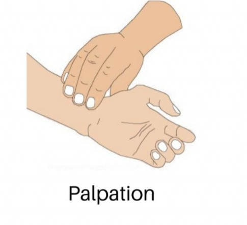 જ્યારે ફિંગરને પાલપેટ કરીએ ત્યારે ફિંગર વચ્ચે સોફ્ટ ટીસ્યુ રોલ થશે. ફિંગર અને હથેળીને રોટેટ કરવી અને નોડને ફીલ કરવી .અને એક્ઝિલાનો એન્ટિરિયર, પોસચીરીયર અને લેટરલ એરિયાને પાલપેટ કરવો.