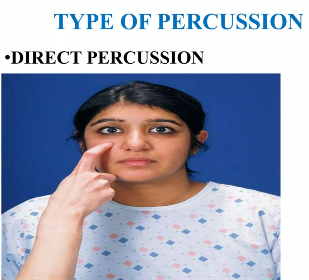 આ ફીઝીકલ એકઝામીનેશન ની મેથડ છે. જેમા બોડી કેવીટી ની અંદર આવેલ બોડી સ્ટ્રકચર ની ડેન્સીટી એ બોડી સર્ફેસ પર એક હાથ મૂકી તેને બીજા હાથ ની આંગળી વડે ટેપ કરવાથી આવતા અવાજ પરથી ડેટા કલેક્ટ કરી શકાય છે. દા.ત. બોડીના સ્ટ્રકચર મા એઈર, ફ્લુઇડ વગેરેની હાજરી ના લિધે ટેપીંગ થી આવતા અવાજ મા ચેન્જ જોવા મળે છે.