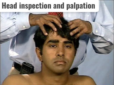 Head inspection and palpation (હેડ ઇન્સ્પેક્શન અને પાલપેસન):
