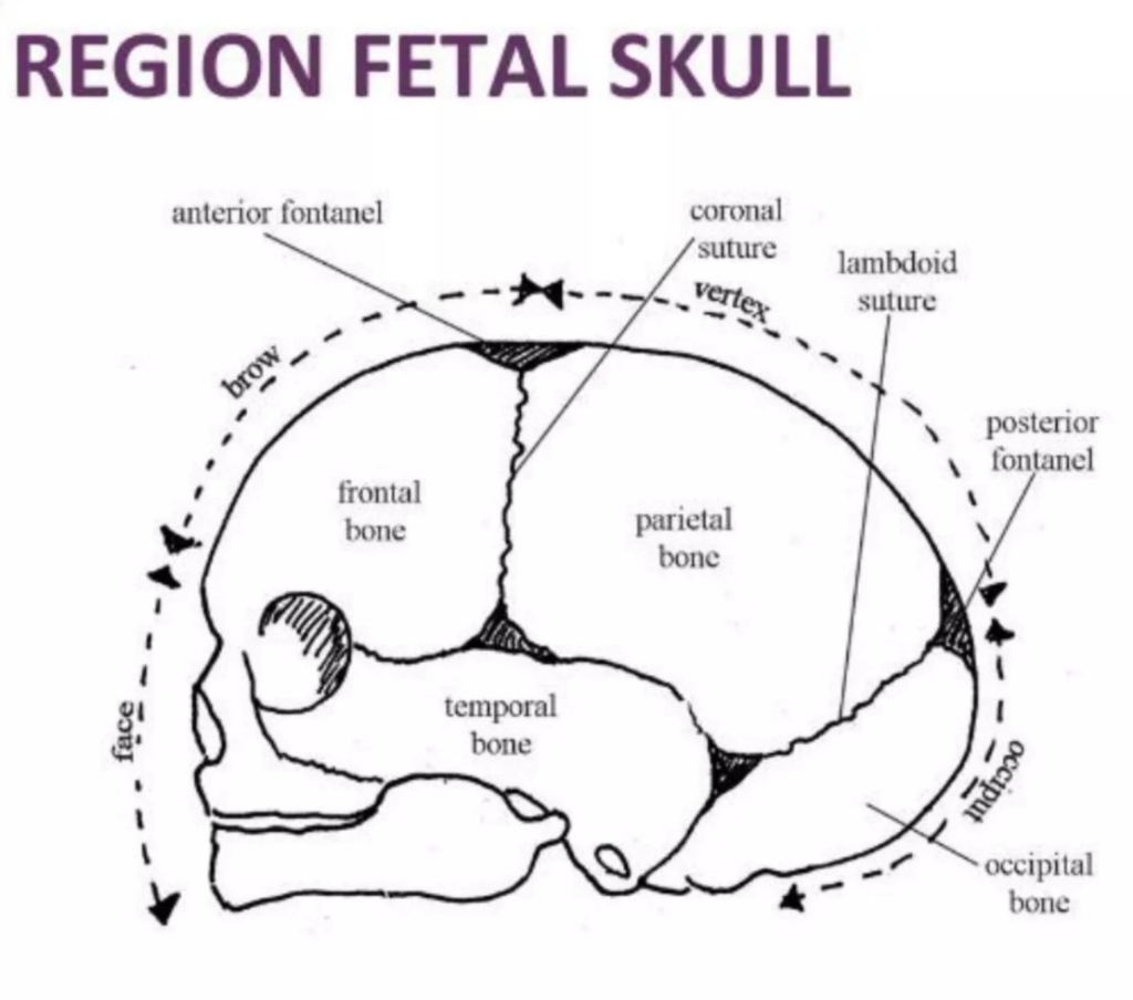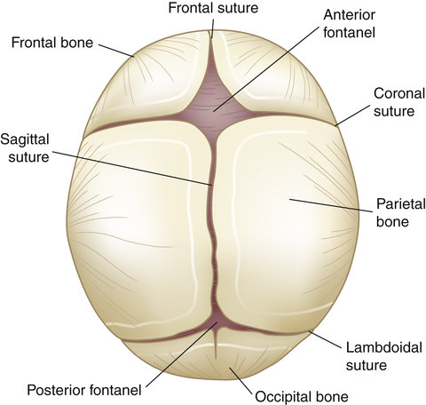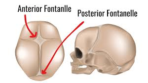 • ન્યુબોર્ન બેબી ના સ્કલ ના બોન એ સોફ્ટ અને ફ્લેક્સિબલ હોય છે, જેમાં બોન ની પ્લેટો વચ્ચે ગેપ હોય છે. સ્કલ ના બોન ની પ્લેટો વચ્ચેની જગ્યા ને ક્રેનિયલ સ્યુચર કહેવામાં આવે છે. એન્ટિરિયર અને પોસ્ટીરીયર ફોન્ટેનેલ એ બે ગેપ ધરાવે છે જે ખાસ કરીને મોટા હોય છે. બાળક ના માથાના ઉપરના ભાગને ટચ કરવા પર આ નરમ સ્પોટ્સ અનુભવાય છે.