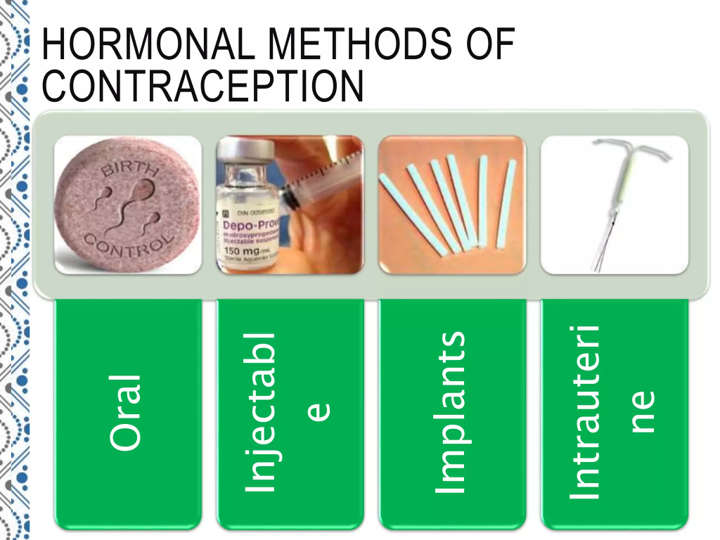 1) ડિપોટ- મેડ્રોક્સી પ્રોજેસ્ટેરોન એસીટેડ( DMPA) – 150 mg ઇન્ટ્રામસ્ક્યુલર ઇન્જેક્શન એવરી 3 મંથ પ્રોવાઇડ કરવામા આવે છે.