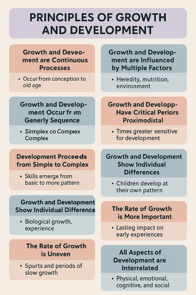 ગ્રોથ એન્ડ ડેવલપમેન્ટ એ કંટીન્યુઅસ પ્રોસેસ છે. દરેક બાળકો માટે યુનિક જોવા મળે છે. તેની સાથે સાથે તે ઈન્ડિવિજ્યુલ ડિફરન્સીસ ની પેટર્ન પણ ફોલો કરે છે.