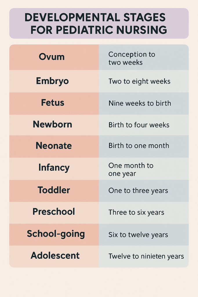 Growth & Development નો પ્રોસેસ જન્મ પહેલા શરૂ થઈ જાય છે, એટલે કે જ્યારે Mother ના યુટ્રસ મા કન્સેપશન થાય ત્યારથી જ ગ્રોથ એન્ડ ડેવલપમેન્ટ અને પીડીયાટ્રીક ની પણ શરૂઆત થાય છે. ત્યારબાદ તે આખી જિંદગી શરૂ રહે છે.
