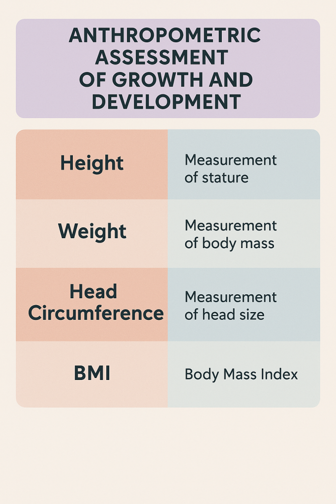 તેમા હાઈટ, વેઇટ, હેડ સરકમફરન્સ, ચેસ્ટ સરકંફરન્સ વગેરેનો સમાવેશ કરવામા આવે છે.