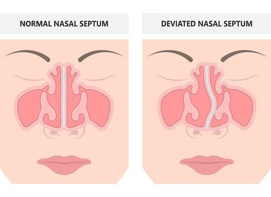 નેઝલ પેસેજમાં બ્લોકેજ અને સ્ટફિનેસ જોવા મળે છે.