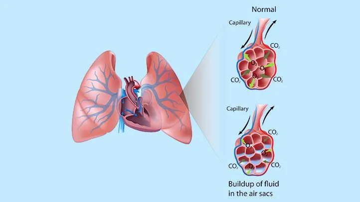 એલ્વીઓલાઇ એ સામાન્ય રીતે ગેસ ને એક્સચેન્જ કરવા માટેનું વર્ક કરે છે પરંતુ ન્યુમોનિયા ની કન્ડિશન માં ઇન્ફેક્શન તથા ઇન્ફ્લામેશન થવાના કારણે તથા પસ નુ એક્યુમ્યુલેશન થવાના કારણે ગેસ એક્સચેંજ મા ઇન્ટરફેરન્સ થાય છે.