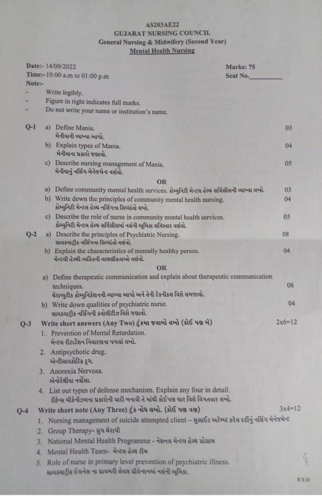 Q-1 a) Define Mania. મેનીયાની વ્યાખ્યા આપો. 03