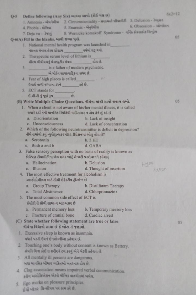 1.When a client is not aware of his/her mental illness, it is called જયારે દર્દી તેની માનસિક સ્થિતિથી માહિતગાર ન હોય તેને શું કહે છે.