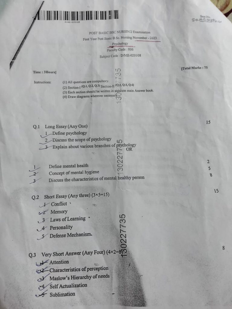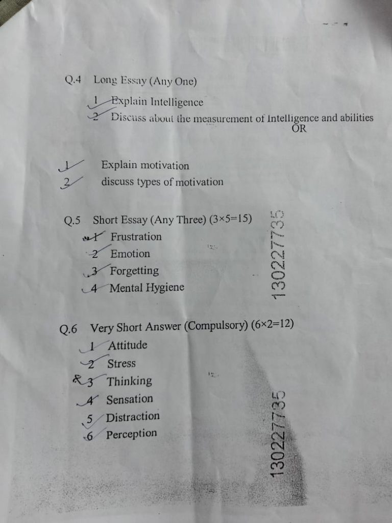 🟢P.B.Sc.-PSYCHOLOGY LOGY SAU.UNI 2023 NOVEMBER (PAPER NO.6 UPLOAD)