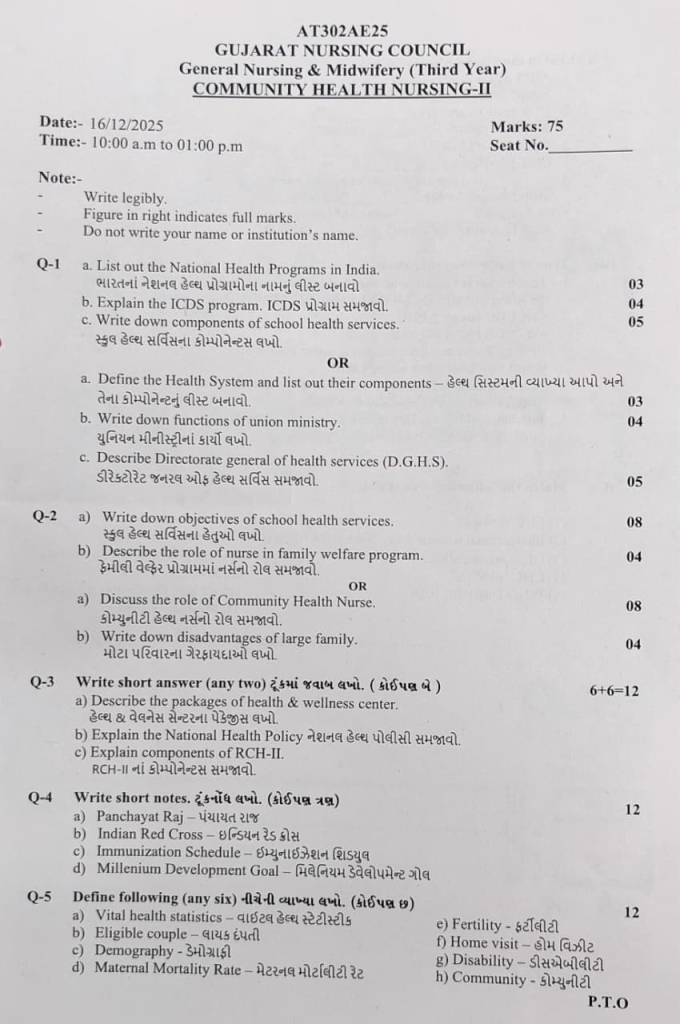 THIRD YEAR COMMUNITY HEALTH NURSING (CHN)- II 16/12/2025 PAPER SOLUTION (COMPLETE)