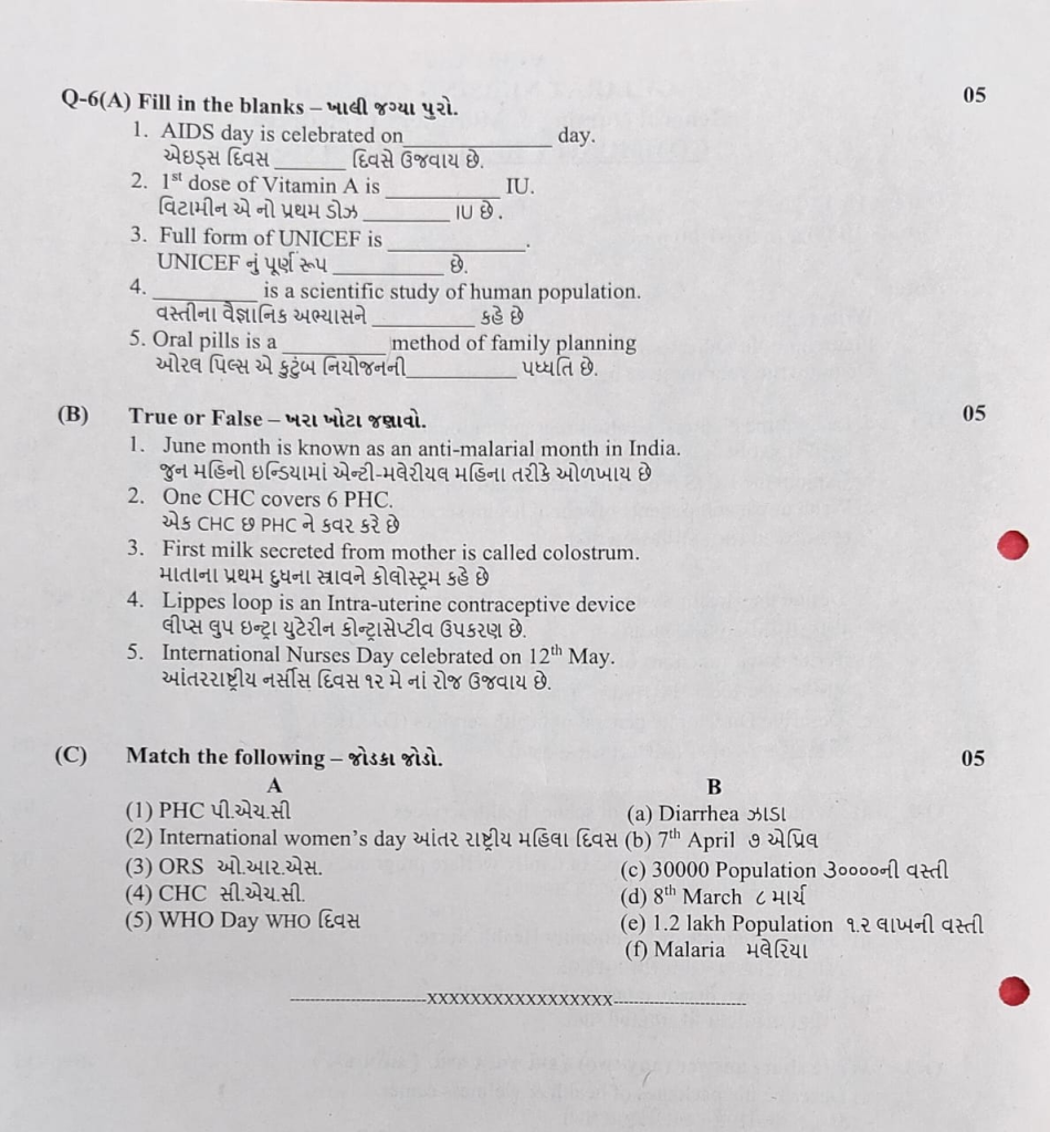 Q-6 (A) Fill in the blanks – ખાલી જગ્યાઓ પુરો. 05